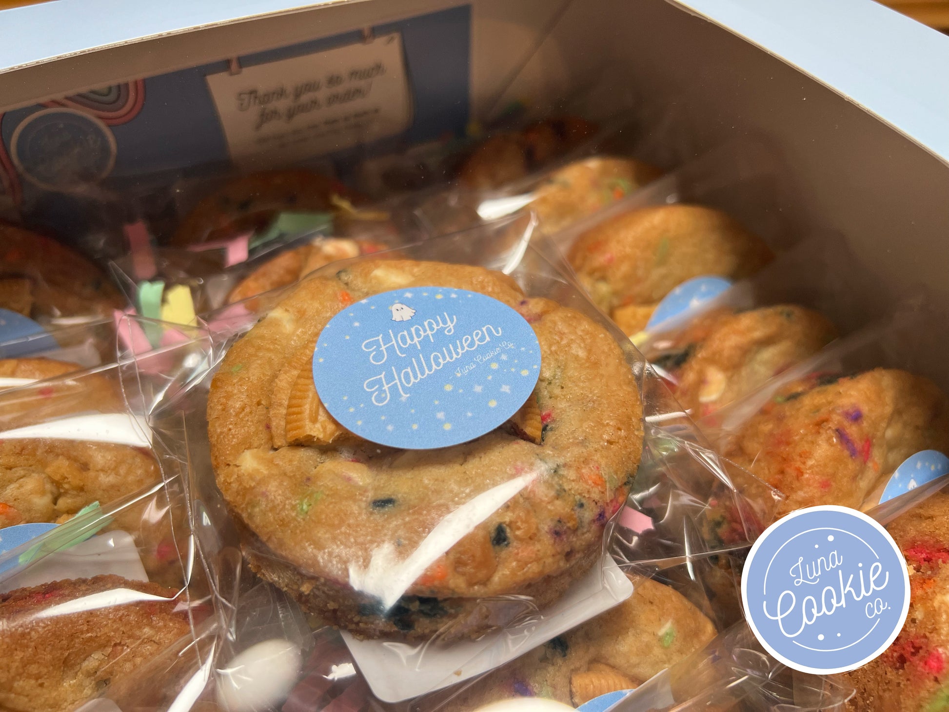 Bring a little Luna magic to your next gathering with our Mini Cookie Party Packs — 20 handcrafted 2oz cookies, each baked from scratch in small batches. Mini Cookies are about 3 inches wide and 3/4 inch tall.